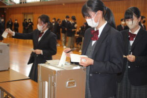 生徒会長1名、副会長2名の立候補があり、4月13日(木)に、立会演説の後、投票が行われました。