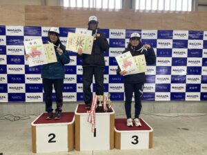 連戦の疲れが見える中でのレースとなりましたが、全力を尽くして滑り切りました。 総合の部では男女アベック優勝を果たしました。