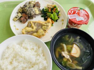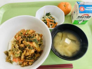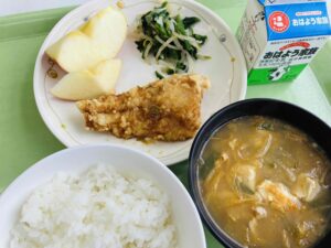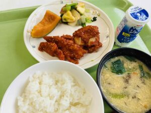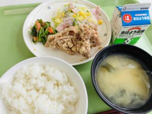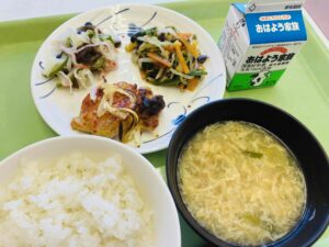 たんぱく質:39.9g 3学期は3年生が食堂を利用します。3年生が給食を食べられるのは残り1カ月と少し。友達との会話を楽しみながら、バランスの良い食事を意識して、給食をしっかり食べてください。
