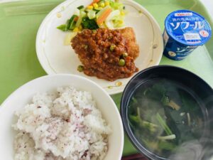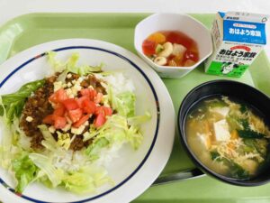 タコライス たまごスープ フルーツポンチ 牛乳